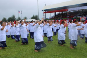 Despite the rain, Governor Lemanu and First Lady Ella and other VIPs came down from their grandstand seats for the taualuga.