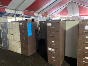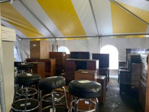 On sale were a large array of appliances, some looked new, while some looked good for parts only. There were washers, dryers, air conditioners, refrigerators, ovens, home and office furniture i.e., tables, filing cabinets, chairs, desks, beds, mattresses, couches, lamps, and home and commercial kitchen equipment.