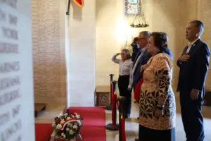 “Henry Saaga was a young Samoan soldier who was born and raised in Utulei Village, American Samoa. He fought in the invasion of Normandy, and was last seen fighting bravely in the hedgerow combat,” Amata continued. “He is honored on a commemorative wall in France, where names are highlighted with wet sand from the nearby beach—the only acceptable reason to take sand from the protected beach.”